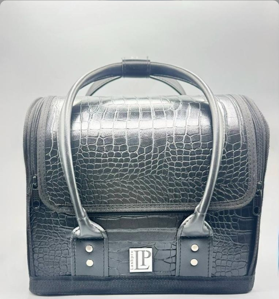 کیف ابزارمژه و ناخن سایز متوسط(مشکی پوست ماری)